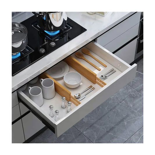 Nous privilégions les lignes épurées, les formats adaptables, les solutions qui fonctionnent aussi bien dans un petit appartement parisien que dans une maison de famille. Un organisateur de placard qui libère de l'espace. Un range-épices qui transforme un plan de travail encombré en surface respirante. Un séparateur de tiroir qui met fin, une bonne fois pour toutes, au désordre silencieux qui s'accumule.